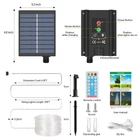 Outdoor Garden Decoration: Total 72ft / 200 led Outdoor string lights with 17 keys remote. it provides 8 light modes (1-7 are different flash modes, and mode 8 is steady on) for decorating your yard, tree, porch, fence, garden, pathway, walkway,RV; You can also adjust the brightness and use the timer function. Please note: this light contains 66ft rope lights + 6.6ft extension cord Upgrade Solar String Lights - Total 72ft / 200 led Outdoor string lights with 17 keys remote. it provide 8 light modes (1-7 are different flash modes, mode 8 is steady on), Adjust the brightness; Timer function. Total 72ft: 66ft string lights + 6.6ft traction line Energy Saving & Environmental Protection- High-quality solar power, effective energy saving. It built-in 1200mah rechargeable battery, solar panel charging during the day, light auto turns on at dusk, 20h runtime when fully charged. Tips: Please do not remove the protective film on the solar panel to avoid shortening the life of the solar panel. Memory Function & Timing Function: This solar light has memory function, you just need set one time, they stay set until you adjust them again. Timer function - 3H/5H/8H. Longer Life & More Safe - Our solar light is completely covered by a transparent PVC tube, it is durable and flexible, you could DIY the solar lights into any shape you want. It's also much safer for Kids and pets compared with ordinary copper wire string lights Christmas Decoration & IP67 Waterproof - This rope light is IP67 waterproof, you could use this it in sun/ wind /rain/snow/ fog and any weather. It's a good choice for Indoor & outdoor decorations, and fit special events like party, Xmas, Halloween, Thanksgiving, wedding, birthday, Valentine’s day, etc Package: 1* string light, 1* solar panel, 1* remote control, 1* user manual, 10* zip ties. Any questions please contact us.