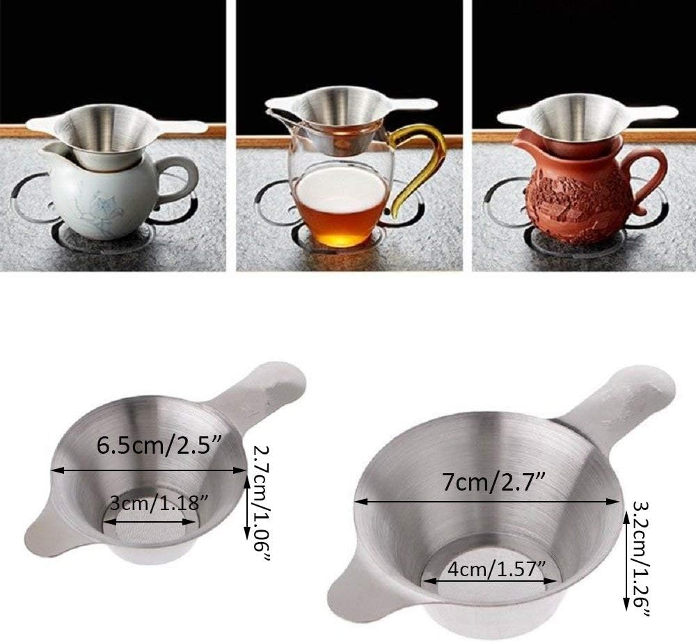 Perfect fit for a Cup, Teapots, Mugs, sits on top. Strains Tea coffee grounds perfectly, Very fine mesh. Made of Sanded stainless steel material, safty, easy and convenient to use and clean. Incredibly fine mesh masking, even teas with really fine particulates (such as Rooibos and some green teas) leave almost no residue at the bottom of your cup. Two different size, Perfect fit for almost most standard cups, mugs, even fits in small teapot (and is large enough), if we have guests. Let boiling water settle about 15-20-second before pouring,Dishwasher safe. Product Description Tea Coffee Strainer Fine Mesh Great for preparation of tea for home, kitchen or restaurant etc. It can filter the Tea and Coffe grounds effectively. Made of Sanded stainless steel material, safty, easy and convenient to use and clean.
