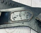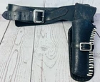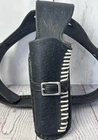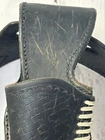 Step into the Old West with this vintage Idaho Leather Co. gun belt and holster, crafted from high-quality black leather with detailed tooling. The belt is personalized with the name “Roy” and features decorative star accents. • Brand: Idaho Leather Co. • Color: Black • Material: Leather • Belt Size: Approx. 32” (please verify measurements) • Holster: Single holster with woven accent stitching • Buckle: Silver-tone metal • Condition: Pre-owned with signs of wear, including scuffing and creasing (see photos for details). This classic Western accessory is perfect for collectors, reenactors, or display. Don’t miss out—add this vintage piece to your collection today!