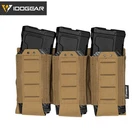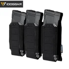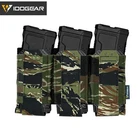 IDOGEAR Tactical Triple Mag Pouch Open-Top MOLLE Magazine Pouch Elastic for M4 M16 5.56MM Magazines Holder Material:High quality nylon+carbon fiber Weight:150g Size:23.5.5*15*2.5cm (9.25"x 5.91"x 0.98") Package:triple mag pouch*1 HIGH QUALITY ELASTIC FABRIC: A storage space between the carbon fiber plate and rebber band,ideal for glow sticks,tactical pens,etc. LASER-CUT CARBON FIBER DESIGN: The carbon fiber pattern plate keeps the pouch mouth open,enabling quick magazine insertion/removal. BOTTOM CUT-OUT DESIGN: The design at the bottom prevents dirt from hiding, drains water in time to keep it dry and clean, and you can also gently push upward to remove the magazines silky smoothly and quickly. MOLLE COMPATIBLE: The MOLLE webbing on the back can be attached to any gear with the MOLLE system to quickly mount or remove the pouch, and you can also attach it to your everyday belt.