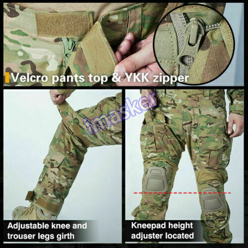 IDOGEAR Men's GEN3 Tactical Pants Army Camo Combat Pants BDU Trousers Knee Pads Package: a pair of pants,knee pad x2pc IDOGEAR Gen3 Combat Suit &Pants is make by High Quality Nylon and cotton material, wearable and comfortable tactical uniform shirt & pants. It is designed as a no-compromise assault uniform, these pants are aggressively cut for maximum mobility. These combat-proven pants are sized in 2-inch waist increments and multiple lengths for a perfect fit. Features a unique padded waistband and hi-mobility stretch panels at the knee and lower back. 10 pockets . Features: Material: 50% Cotton & 50% Polyester & Teflon coating Unique low-profile waist adjust system Each cargo pocket conceals water bottle/magazine stabilizer Dedicated knife/light holder that still allows pocket access Simple kneepad height adjuster located in front thigh pocket Designed for use with removable AirFlex™ Combat Knee Pads Built-in flap covers kneecap opening when not using knee pads Stretch gusseted crotch Size Chart:1inch=2.54cm Size Chart : INCH/CM Tag Size Waist Length Thigh Hip S 30.7'' 78 40.6'' 103 25.2'' 64 44.1'' 112 M 32.6'' 83 41.3'' 105 26.0'' 66 45.7'' 116 L 34.6'' 88 42.1'' 107 26.4'' 67 47.2'' 120 XL 36.6'' 93 42.5'' 108 26.8'' 68 48.8'' 124 XXL 38.5'' 98 42.9'' 109 28.3'' 72 50.4'' 128 Fit height weight 121lb 132lb 143lb 154lb 165lb 176lb 187lb 198lb 209lb 220lb 64.9 inch S S M M L XL 66.9 inch S S S M M L XL XXL 68.8 inch S S S M M L L XL XXL 70.8 inch M M M M M L L XL XXL XXL 72.8 inch M M M M L L XL XXL XXL 74.8 inch L L L L L XL XXL XXL 76.7 inch XL XL XL XL XXL XXL Note: 1.Actual fabric colors may vary slightly from online colors due to variations in screen color settings. 2.The size is Asian size ,To be safe,Please measure one of your own Pants to make comparison with ours, so as to select a correct size.Please measure yourself before ordering,contact us if you are not sure. Payment 1. We accept PAYPAL only. 2. Payment must be made within 7 days of auction closing (Unpaid dispute will automatically open when item is not paid in 7 days). 3. PLEASE NOTE: SHIPPING&HANDING DOES NOT INCLUDE DUTIES, LOCATL TAXES OR ANY OTHER IMPORTATION FEES. 4. Please list your special requests (color, packages, value of declaration, etc.) in the EBAY NOTES SECTION when you make payment Shipping 1. We Ship to Worldwide 2. We ship your orders within 1-2 business days after the payment cleared. 3. Item shipped from China via china Post Airmail, reach most of the countries within 2 to 4 weeks. 4. Delivery time depends on destination and other factors, it may takes up to 20 days. If you don't receive the item after 25 days,please contact us, we'll investigate and solve the delivery problem. 5. Import duties, taxes, and charges are not included in the item price or shipping cost. These charges are the buyer's responsibility. Please check with your country's customs office to determine what these additional costs will be prior to bidding or buying. Warranty Return 1. Customer satisfaction is our top goal. All products are quality checked. They are new and in good condition when shipped to our customers. If product is defective or damage upon arrival, or wrong product shipped, please contact us immediately. Returns accepted within 14 days of delivery date and item must be in original new condition, not worn or altered in any way with attached tags & wrap. Otherwise deal is final. Return shipping must be paid by buyer. 2. Please contact us first if you have anyproblems/questions/concerns. We will be happy to resolve any issues you may have in a cordial and friendly manner. 3. We appreciate your Positive Feedback, and will do the same in return. PLEASE DO NOT leave negative feedback without first communication with us. Please allow max 24 HOURS for us to respond About Feedback We maintain high standards of excellence and strive for 100% customer satisfaction! Feedback is very important to us. We request that you contact us immediately BEFORE you give us neutral or negative feedback, so that we can satisfactorily address your concerns.It is impossible to address issues if we do not know about them! Contact Us We care about our valued customers, if you have any questions, please feel free to contact us in EBAY MESSAGE, our Customer Service staffs will be very pleasure to reply you in 24 Hours.