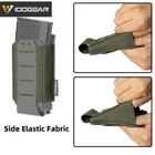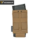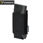 IDOGEAR Tactical Single Mag Pouch Open-Top MOLLE Magazine Pouch Elastic for M4 M16 5.56MM Magazines Holder Material:High quality nylon+carbon fiber Weight:60g Size:14.5*7.6*2.5cm(5.71"X2.99"X0.98") Package:triple mag pouch*1 HIGH QUALITY ELASTIC FABRIC: A storage space between the carbon fiber plate and rebber band,ideal for glow sticks,tactical pens,etc. LASER-CUT CARBON FIBER DESIGN: The carbon fiber pattern plate keeps the pouch mouth open,enabling quick magazine insertion/removal. BOTTOM CUT-OUT DESIGN: The design at the bottom prevents dirt from hiding, drains water in time to keep it dry and clean, and you can also gently push upward to remove the magazines silky smoothly and quickly. MOLLE COMPATIBLE: The MOLLE webbing on the back can be attached to any gear with the MOLLE system to quickly mount or remove the pouch, and you can also attach it to your everyday belt.