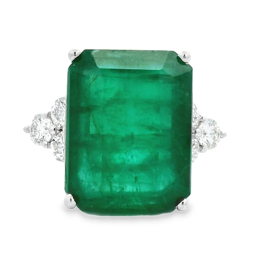 A Beautiful Emerald cut Emerald ring. 6.75 US / 14 IT / 54 EU **Ring size can be adjusted for free Comes With authenticity report from IGI (report number engraved on the inner side of ring) Centre Stone - Emerald, Centre Stone Weight - 9.94 Carat, Centre Stone Transparency - Transparent IGI Report Number- 62J4957325 Total Number of Diamonds - 06 , Diamonds Carat Weight - 0.61 carat Diamond Shape and Cut - Round Brilliant Cut, Diamond Colour - G-H Clarity - VS Set in 14K White Gold , 4.33 Grams gross weight, Ring Size - 6.75 US, 14 IT, 54 EU