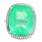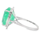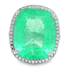 "A beautiful Cushion Cut Emerald Ring" Comes With authenticity report from IGI (Jewelry report number engraved on the inner side of ring) Centre Stone - Emerald, Centre Stone Weight - 12.70 Carat, Centre Stone Color - Intense Green Centre Stone Transparency - Semi Transparent IGI Report Number - 24J2797725 Total Number of Diamonds - 58 Diamonds Carat Weight - 0.20 carat Diamond Shape and Cut - Round Brilliant Cut, Diamond Color & Clarity - F/G VVS/VS Diamonds FG is color of diamonds ( near colorless white diamonds) VVS/VS means Very very slight inclusion not visible to unaided eye Set in Platinum, 7.56 Grams gross weight, Ring Size - 6.5 US #Hallmarks: HUP Pictorial PT950