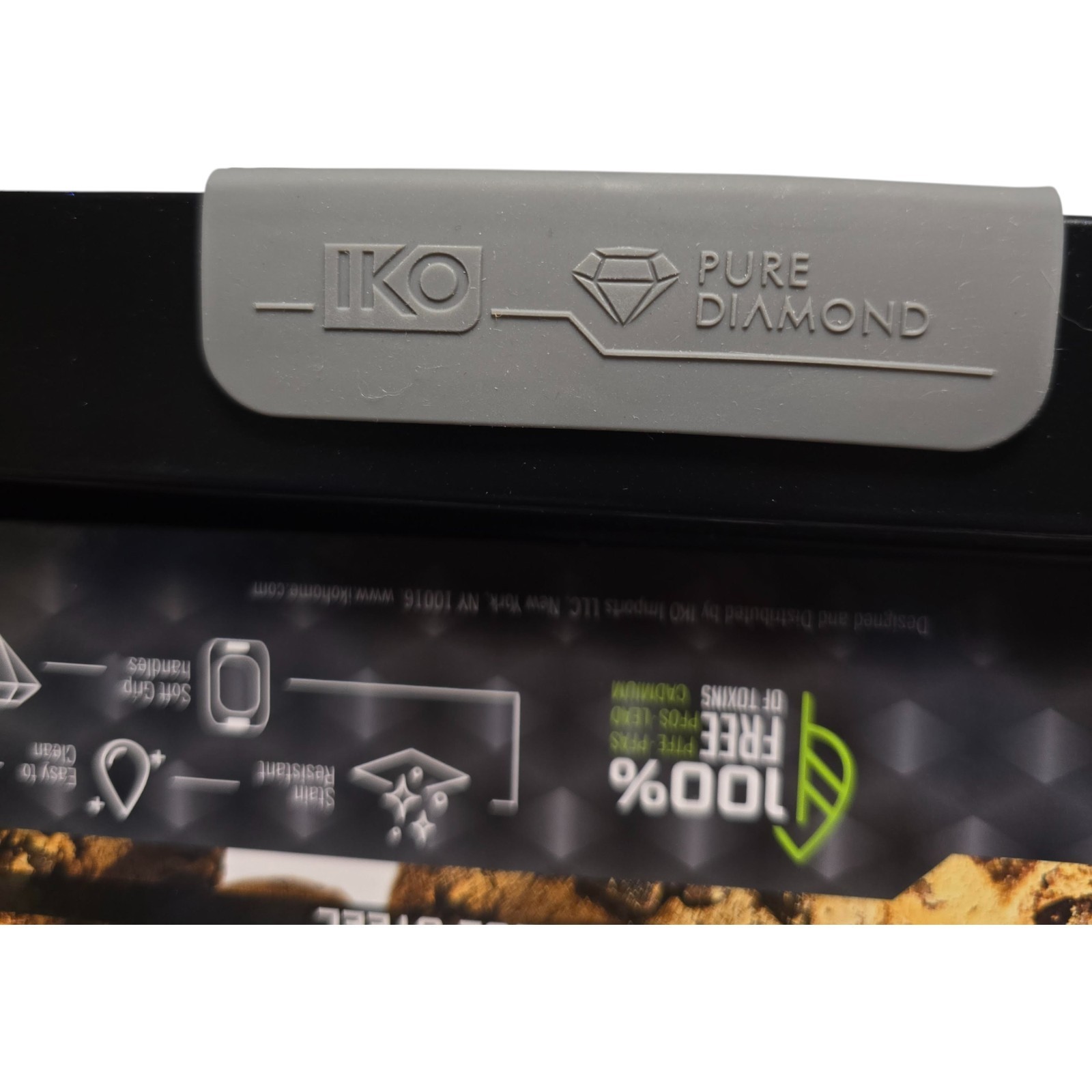 IKO 13 1/4 x 9 1/4 Diamond Ceramic Nonstick Cookie Sheet Heavy Gauge Steel New The IKO 13 1/4 x 9 1/4 Diamond Ceramic Nonstick Cookie Sheet is a high-quality baking sheet made from heavy gauge steel with a durable ceramic surface coating. The rectangle-shaped sheet measures 13 inches in length, 9 inches in width, and 1 inch in height. This cookie sheet is oven safe and features easy cleaning and non-stick properties, making it ideal for baking delicious cookies and other baked goods in your kitchen or home. 100% free of toxins!