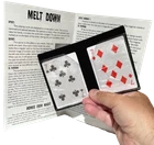 NEW Melt Down Improved ! By Las Vegas Magic Co. Two playing cards are displayed in a small plastic wallet. The cards are removed and placed between the spectators hands. When the spectator separates his hands, it is seen the cards have changed. The pips from one card have melted on to the back of the other, leaving one card completely blank! Bonus Coin Magic! Place a penny on the back of a spectator’s hand. Tap it with the wallet, and it becomes a dime (dime not included). The effect is repeated, but the penny shrinks! Perform an incredible transposition of a penny and dime! Easy to do! Includes special wallet, cards and coins (shim shell penny & mini penny) complete with instructions! Sale Includes: Black gimmicked wallet, 2 cards, shim penny, mini penny and instructions. Please Note: Cards have Bicycle design backs but are not made by Bicycle Card Co. Card suit may vary. WOW FREE SHIPPING! Trickmaster - blue tub Please check out my other great items including Geist Visual Comedian DVD's , Robbie Raccoons and much much more!