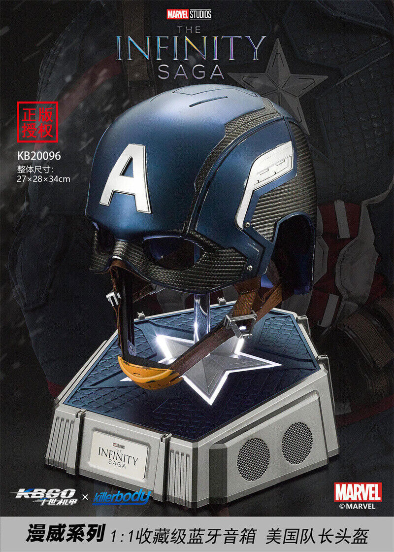 100% Brand new and High quality Head size: 53cm-59cm Package: Helmet+Bluetooth Speaker Base Country of Origin China Scale 1:1 Type Action Figure Collection Age Level 12+ Brand Unbranded Character Captain America Theme TV, Movie & Video Games Packaging Original (Unopened)