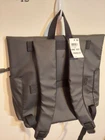 Macy's INC International Concepts Roll Top Black Backpack This INC backpack can hold all your essentials for your day to day travel. With its sleek style and multi-compartments, it gives you room for everything to store. It has a spot clean finish and a zip pocket in front. Handle size: 7" Length Adjustable straps: 25" Length Dimensions: 14-1/4"x 12"x 5-1/2" Features: Adjustable straps, padded straps, outer pockets, Inner pockets, laptop compartment, key clip, bottle pockets on both sides, and lightweight. Color: Black PU; lining: Polyester Imported Made for Macy's brand. Great quality and materials. Original retail: $80