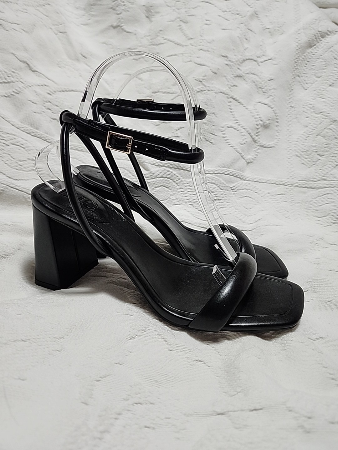 Excellent condition women's INC International Concepts strappy open toe faux leather heels. Little to no wear or flaws.