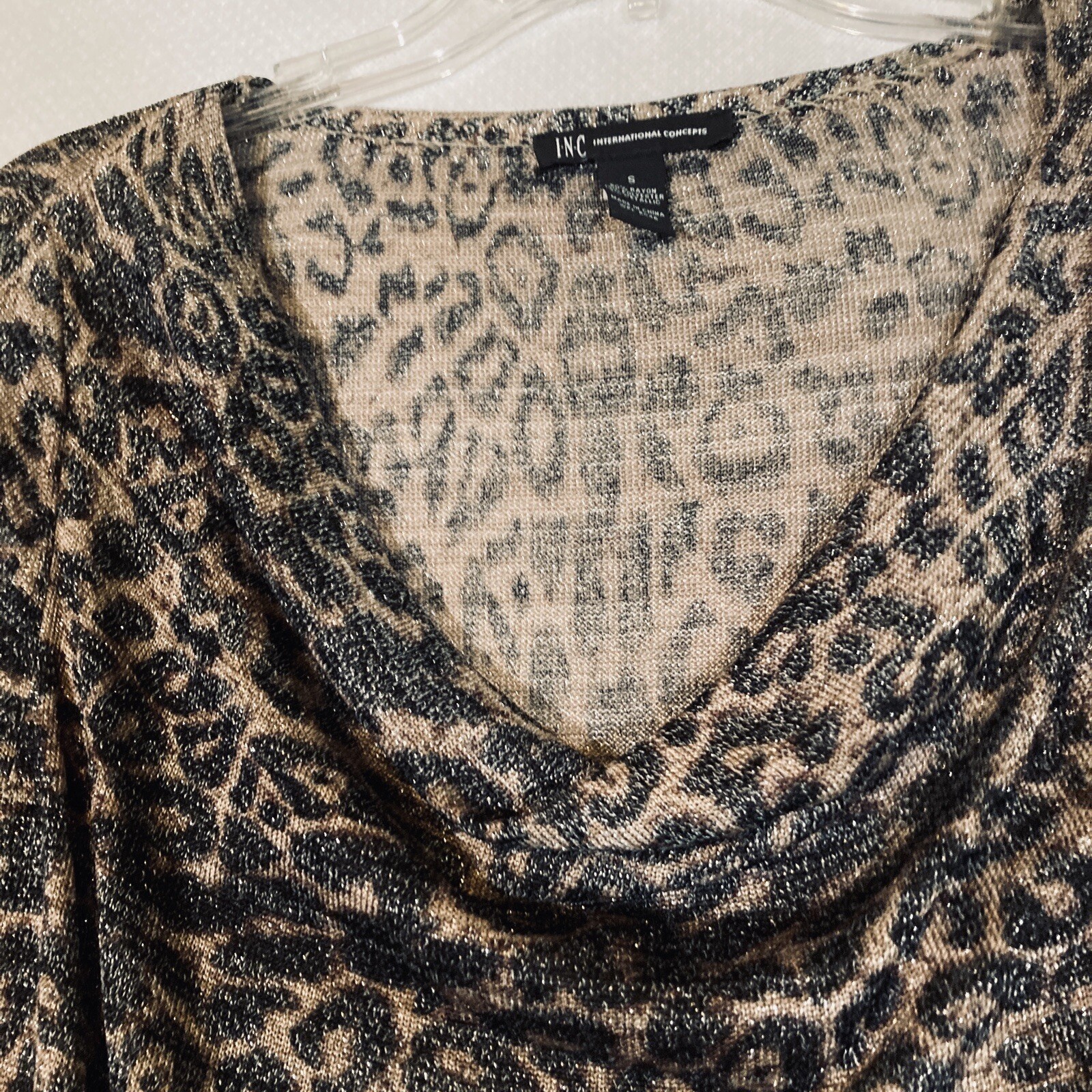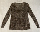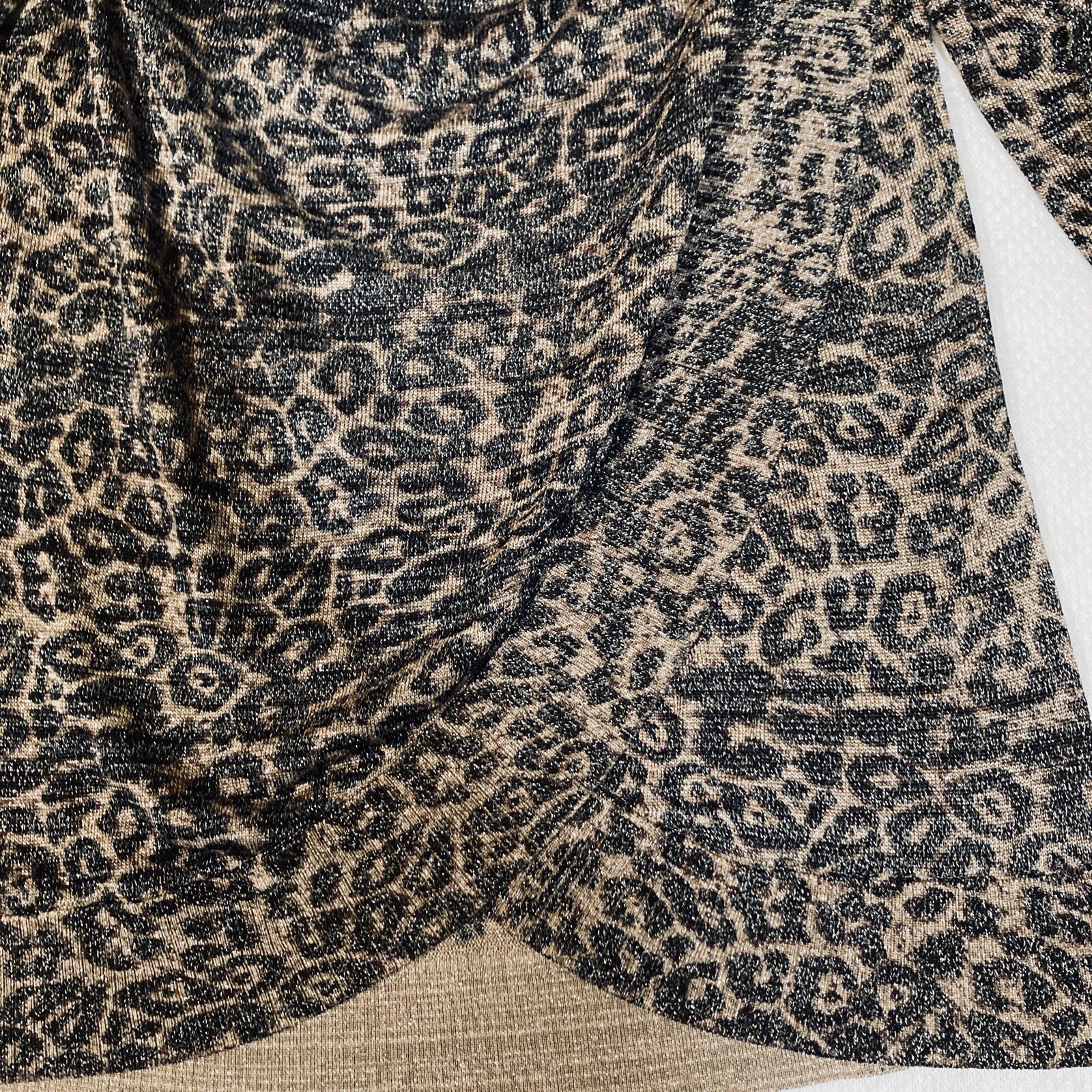 This top is stylish and comfortable—perfect for work or a night out! The animal print adds a fun, trendy touch, and the metallic detailing elevates the look. Fast shipping and great seller communication. Love it!