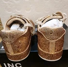 See pics, there are a few rhinestones missing. The INC Women's Lolaf Gold Casual And Fashion Sneakers Shoes in size 7 Medium are a stylish and versatile option for women. Featuring a gold bling color and faux leather fabric, these sneakers are perfect for casual occasions in the spring season. The synthetic upper material and man-made composition ensure durability and comfort, while the sneaker style adds a fashionable touch to any outfit. The INC brand is known for quality and these shoes are sure to make a statement.
