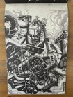 It is a comic book titled "INFESTATION: SKETCHBOOK (IDW 2011)" featuring artwork from various artists. The comic is part of the Infestation series by IDW Publishing, combining Transformers and GI Joe characters in a horror and sci-fi setting. The comic is in black and white, with a set of action-packed and adventurous stories featuring characters like Cobra Commander, Optimus Prime, and Megatron.