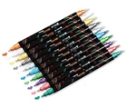 Multifunctional Metallic Markers Metallic marker pens for black paper crafts Dual tip metallic pens for art projects Metallic markers for rock painting or gift making Best holiday gift for family, kids and adults Product Details: Material: Water based ink and pp Color: 10 Vibrant metallic colors Tip: Medium & brush tip Package Includes: 10 x Dual Tip Metallic Marker Pen High Quality Metallic Markers: Made of premium water-based opaque ink conforming to ASTM D4236, our metallic marker pens are non-toxic, odorless, quick-drying, fade-resistant, and provide strong coverage to add shiny embellishments to various craft projects 10 Vibrant Metallic Colors: The set includes 10 vibrant colors—green, red, purple, light green, blue, silver, black, gold, white, bronze—offering better color selection and a vivid metallic finish for arts, crafts, and decorations. The white ink applies transparent but turns opaque when dry Dual Tip Design: INKLAB dual tip metallic pens feature a medium tip for bold marks and clean lines, and a brush tip for creating extra fine lines or filling shapes (0.38-5 mm). The versatile tips are perfect for detailed work and adding vibrant color Works on Most Surfaces: These markers are ideal for use on photos, card stock, rock, plastic, mugs, fabric, metal, wood, ceramics, glass, and especially black paper or dark surfaces. The ink flows smoothly with consistent color, no shaking needed Multifunctional Uses: Perfect for art projects, black paper crafts, DIY crafts, drawing, present making, customized mugs, rock painting, adult coloring, and as a present for family, kids, and adults
