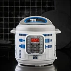 Instant Pot 112-0104-01 6Qt Star Wars Duo 6-Qt. Pressure Cooker, R2-D2, White with Blue R2D2 Instant Pot is a smart electric pressure cooker designed by Canadians aiming to be safe, convenient and dependable. It speeds up cooking by 2 6 times, uses up to 70% less energy and, above all, produces nutritious healthy food in a convenient and consistent fashion. Instant Pot Duo is a 7-in-1 programmable cooker, it replaces 7 kitchen appliances as it has the functions of a pressure cooker, slow cooker, rice cooker, steamer, sauté, yogurt maker & warmer. 14 built-in smart programs (Soup, Meat/Stew, Bean/Chili, Poultry, Sauté, Steam, Rice, Porridge, Multigrain, Slow Cook, Keep-Warm, Yogurt, Pasteurize & Jiu Niang) cook your favorite dishes with the press of a button. A 24-hour timer allows for delayed cooking. Automatic Keep Warm holds the temperature of the food until you serve it. Instant Pot generates almost no noise and leaks no steam. It traps all the aromas in the food without heating up the kitchen. The 3-ply bottom stainless steel inner pot is extremely durable and leaves no health concerns associated with non-stick coatings. The slim body design has lid holders for both left and right-handed users. The brushed stainless steel exterior is finger print resistant. Its elegant and durable design makes it easy to clean and pleasurable to use for years to come. Instant Pot Duo uses the latest 3rd generation technology with an embedded microprocessor, which monitors the pressure and temperature, keeps time and adjusts heating intensity. The cooking programs have been lab-tested hundreds of times for optimal effect. These greatly improve cooking results and maintain consistency. Instant Pot is carefully designed to eliminate many common errors that could cause harm or spoil food. It passed the stringent UL certification, giving you uncompromised safety and peace of mind, and protects you with 10 proven safety mechanisms and patented technologies. Features: Brand Instant Pot Capacity 6 Quarts Material Stainless steel Color R2-D2 Finish Type Titanium Product Dimensions 12.4"D x 12.4"W x 13.78"H Special Feature Programmable Wattage 1200 watts Control Method Touch Controller Type Push Button About this item Features 14 Smart Programs - Soup, Meat/Stew, Bean/Chili, Poultry, Sauté/Simmer, Rice, Multigrain, Porridge, Steam, Slow Cook, Keep Warm, Yogurt, Manual, and Pressure Cook. Now, your favorite dishes are as easy as pressing a button Healthy inner cooking pot made from 304 (18/8) stainless steel, no chemical coating, 3-ply bottom for even heat distribution, fully sealed environment traps the flavours, nutrients and aromas within the food. Slow-cooker setting has 3 temperature levels and can be programmed to cook between 30 minutes and 20 hours at each level Built with the latest 3rd generation technology, the microprocessor monitors pressure, temperature, keeps time, and adjusts heating intensity and duration to achieve your desired results every time UL and ULC certified with 10 safety mechanisms to provide you with added assurance, designed to eliminate many common errors Accessories include stainless steel steam rack with handles and condensation collector