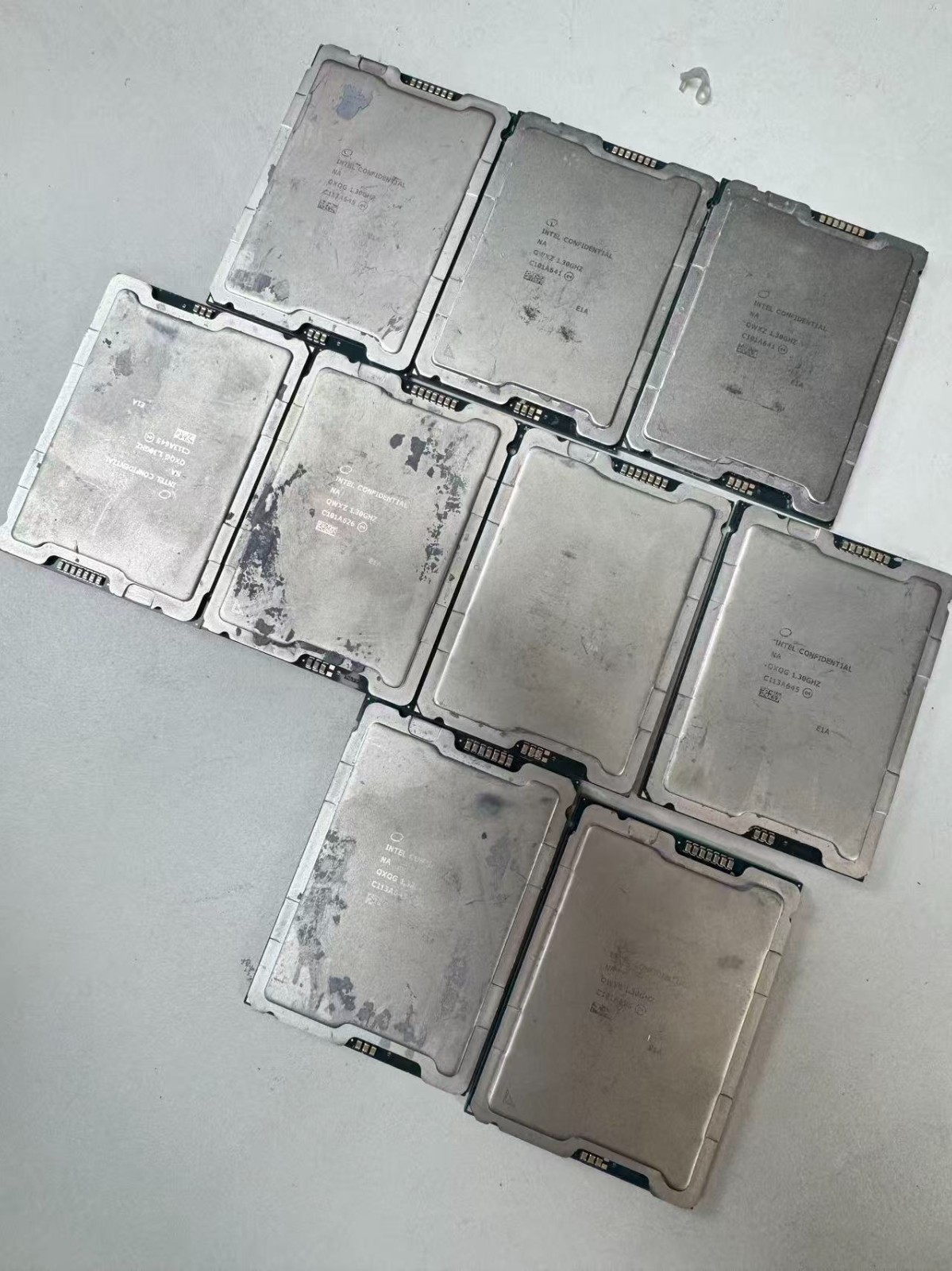 intel confidential cpu type unknown anything y wanna know is on the pics. sell by piece,total 60. we have 4 QY35 which is 1.7G ones; 6 of QXQG 1.6G; 48 of QWXZ 1.3Ghz; and 3 of that QYG2 which is 1.9G ones