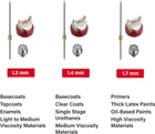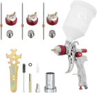 INTERTOOL HVLP Air Paint Spray Gun 1.3, 1.4, 1.7 mm Nozzles, Product Details Brand: INTERTOOL Recommended Uses For Product: Painting Material: Aluminum Item Weight: 1.11 Kilograms Style: Gun Power Source: air_powered Included Components: disposable cup adapter, 20 ounce plastic paint cup, 1/4-inch swivel air hose inlet, spanner, steel brush, optional filter Model Name: PT08-0153 Package Dimensions: 8.35 x 5.51 x 5.28 inches Item Weight: 2.44 pounds Manufacturer: INTERTOOL Item model number: PT08-0153 [High Volume Low Pressure]: High performance sprayer for small and mid-sized projects in auto parts, woodwork, and home improvement. Lay down a consistent finish over a larger area. 1.3, 1.4, & 1.7 mm air caps to handle thinned latex, stains, lacquers, base coats, clear coats, primers, sealers, light to high viscosity materials, and more [Spray With Precision]: Minimized overspray produces detailed results and a fine finish. Reduced pressure helps increase the transfer efficiency up to 75% for better material coverage on the intended object instead of being redirected into the air. More environmentally friendly and less wasted material [Lightweight Balanced Handle]: Gun body is made from high quality aluminum and is anodized to prevent surface corrosion. Smooth trigger engagement and adjustable knobs give the user superior control and comfort [Additional Components]: Includes a disposable cup adapter, 20 ounce plastic paint cup, 1/4-inch swivel air hose inlet, spanner, steel brush, and an optional filter. See Description below for full technical specifications [INTERTOOL has YOU Covered]: We are always available to quickly resolve any issue and answer to your needs. Our community is our #1 priority The INTERTOOL HVLP Gravity Feed Pneumatic Spray Gun with 1.3, 1.4, and 1.7 mm air caps is the ideal gun for DIY’ers and professionals alike. Simple enough for beginners to master and built with the high quality features and materials that seasoned professionals prefer. HVLP stands for High Volume Low Pressure meaning the gun uses a higher volume of air and lower air pressure to produce a fine spray pattern that can cover a larger area faster. Because it requires less air pressure but higher volume, the gun requires a larger air compressor compared to an LVLP spray gun to operate efficiently and with the best results. Multiple sized air caps to handle thinned latex, stains, lacquers, base coats, clear coats, primers, sealers, light to high viscosity materials, and more. Ideal tasks and jobs that work best with the HVLP gun include car parts, wood work such as cabinets and furniture, covering walls and other projects that require accuracy. Along with accurate spraying, this gun boasts an exceptional transfer efficiency of up to 75 percent so that there is less overspray mist and wasted materials that can cause dangerous chemical pollution in the air. The included air regulator gauge assists with reaching the perfect air pressure. An updated body design features high quality aluminum composition that is then anodized for anti-corrosion and increased durability against wear and tear. 3 smooth turning adjuster knobs allow the user to control the air pressure, material flow rate, and spray pattern width, giving you complete control to take on any situation. Upgrade your paint tools with the INTERTOOL HVLP Paint Spray Gun PT08-0153. Specifications: Gun (body) Composition: AluminumTechnology: HVLP (High Volume Low Pressure)Air Cap Sizes: 1.3, 1.4, & 1.7 mmOptimal Working Pressure: 2.0 bar / 29 psiMax. Working Pressure: 3.5 bar / 50 psiSpray Pattern Width: 200 ~ 250 mmSpray Distance: 150 - 200 mmAir Consumption: 8 - 12 cfmIncluded Cup Capacity: 600 cubic centimeter or 20 ouncesTransfer Efficiency: Up to 75% Included in Set: HVLP spray gun1.3 mm air cap1.4 mm air cap1.7 mm air cap20 oz. or 600 cc plastic cupDisposable cup adapter1/4 inch swivel air hose connectorSpanner (wrench)Steel BrushPlastic Filter