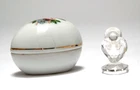 Vintage IRIS ARC Mini Crystal Angel Figurine Shackman Porcelain Ceramic Floral Egg Japan . The angel measures 1 1/8" inches tall. The porcelain egg measures 2" long. The marking on the bottom of the angel looks like it says Iris Arc and a date . On the bottom of the egg it reads copyright SHACKMAN made in Japan. Please take a look at our other crystal figurines we have to offer including Swarovski.