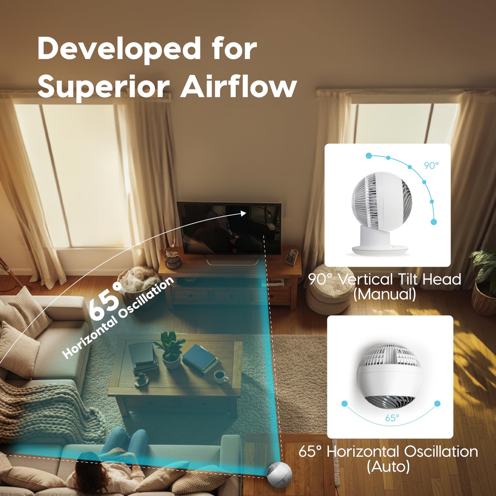 OSCILLATION – Achieve full room auto circulation like never before with WOOZOO oscillation. Set the fan to oscillate 65° to the left and right to ensure airflow reaches every corner of the room, and adjust the head to of six set angles. REMOTE - Change your settings without changing your seat. The remote gives you full control over the settings on your fan; switching the power on and off, changing the mode, changing the speed, auto-oscillation, and setting a timer. TIMER - Fall asleep to a cool breeze without leaving the fan on all night. With the timer function, you can set it to 1, 2, or 4 hours and the fan will shut off automatically, saving you money without having to sacrifice on comfort. QUIET - Emitting only 30 dB of noise, the WOOZOO circulator is perfect for when you need a breeze while trying to sleep or study, or just want to be cool and relax without any loud noises or distractions. GREAT SIZE – The small desktop fan is lightweight and portable. Allows you to move your circulator fan easily from room to another. Dimensions: 8.27"L x 8.27"W x 11.42"H, fits neatly on desks, countertops, and nightstands.