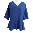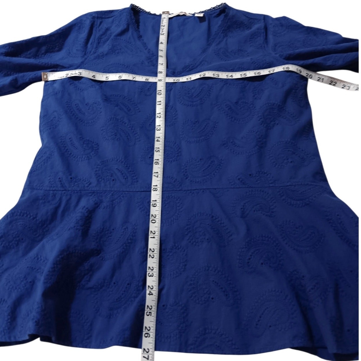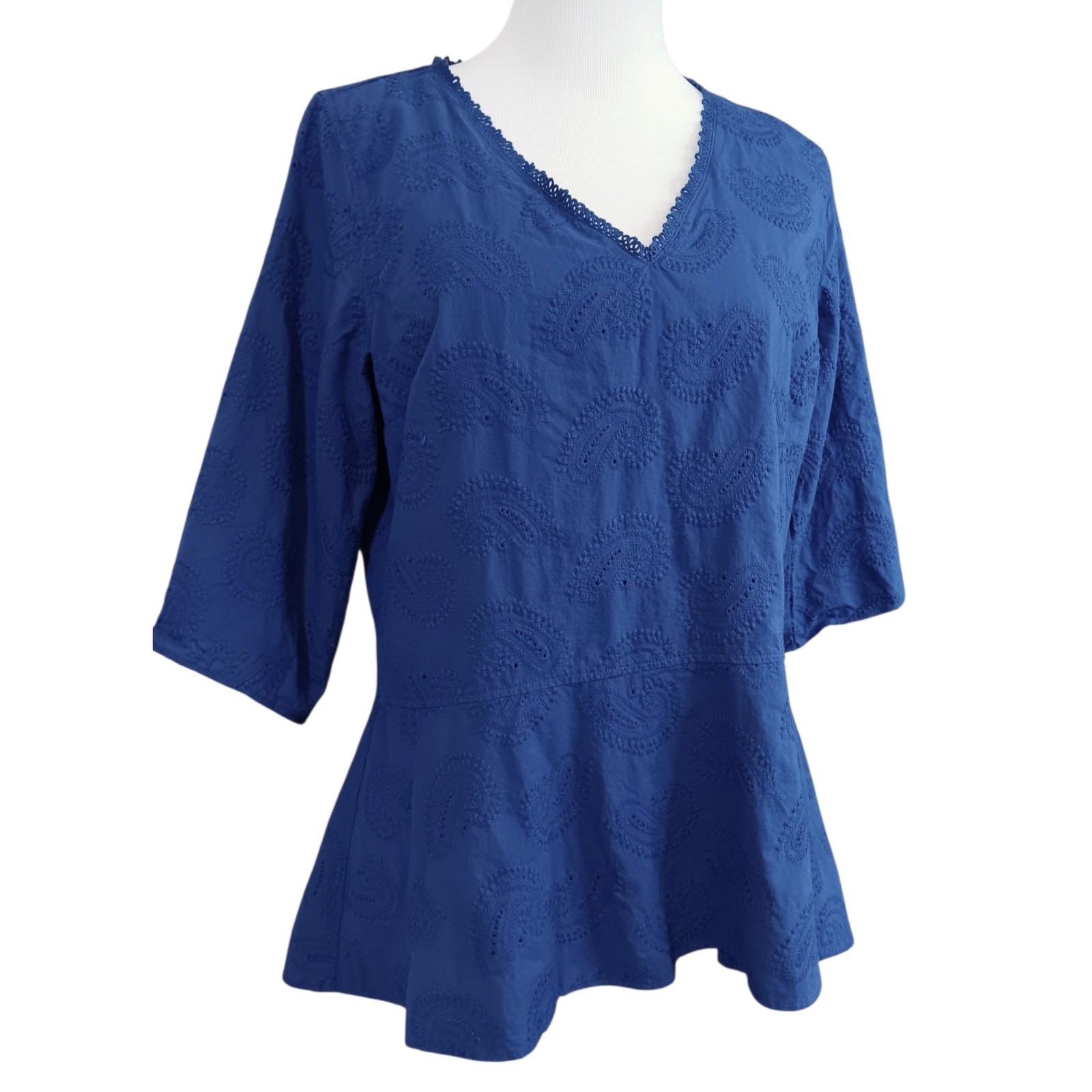 ISAAC MIZRAHI LIVE! Cotton Eyelet Blouse Top Shirt Women's Size Small Royal Blue V-Neck Peplum Flowy Natural Fibers Work Office Casual Peasant Boho Travel Summer Vacation In great condition! Beautiful color! Color/texture may vary due to lighting/devices Items may show wrinkling from packing/transit ID:B18/7