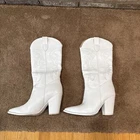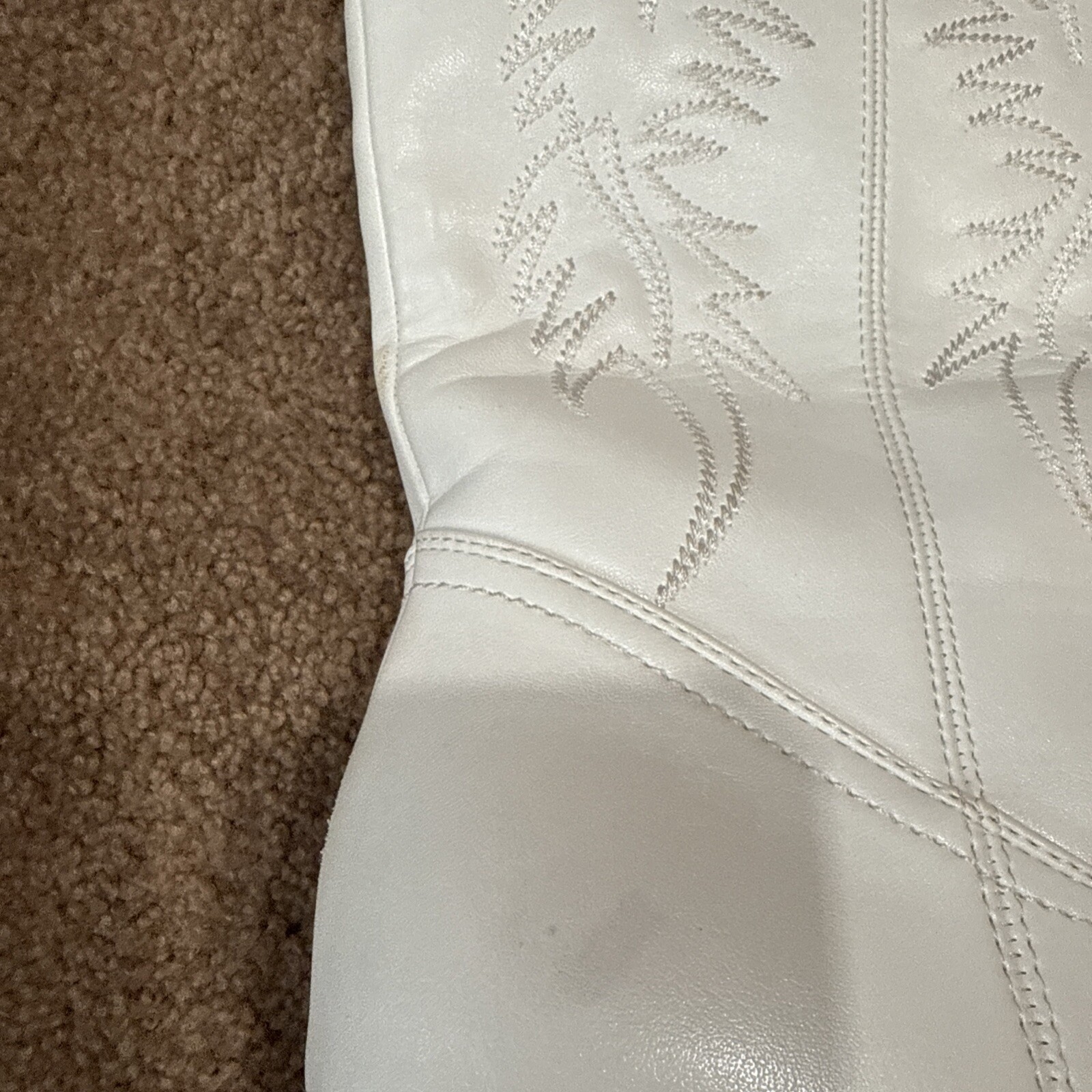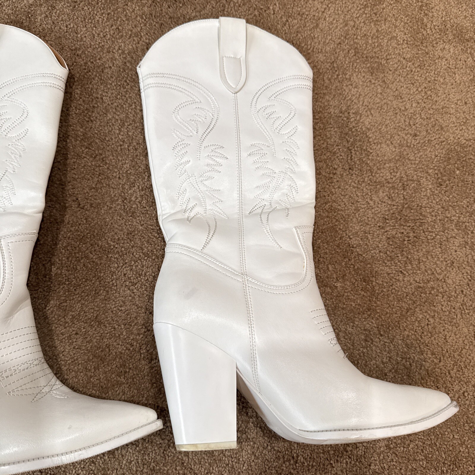 ISNOM Women's 9 White Western Cowgirl Boots Mid Calf Hi Heel Cowboy Embroidery. Condition is Pre-owned. Shipped with USPS Ground Advantage. Used once for a concert