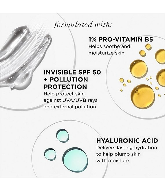 What It Is: With invisible SPF 50, Hello Sunshine is your 3-in-1 daily face sunscreen, hydrating serum, and skin-perfecting makeup primer. What It Does: A broad-spectrum invisible sunscreen that is your essential last step to skincare and first step to makeup. Hello Sunshine goes beyond your average sunscreen for a lightweight, breathable invisible SPF 50, hydrating serum and makeup primer in one. This daily sunscreen for face with a light, fresh scent plays nice under makeup while defending against UVA/UVB rays and external pollution. Helps Prevent: Sun damage Sun spots Dark spots Hyperpigmentation Signs of photoaging like fine lines & wrinkles Features and Benefits: This daily sunscreen for face plays nice under makeup while defending against UVA/UVB rays and external pollution Allergy-Tested Dermatologist-Tested for Safety Suitable for Sensitive Skin Formulated without Oxybenzone Hyaluronic acid: Delivers lasting hydration to help plump skin with moisture 1% Pro-Vitamin B5: Helps soothe and moisturize skin How to Use: On Bare Skin: Apply generously and evenly 15 minutes before sun exposure. Blend into skin and reapply every 2 hours. Layered Under Makeup: Acts as the perfect makeup primer for a smooth, hydrated look.