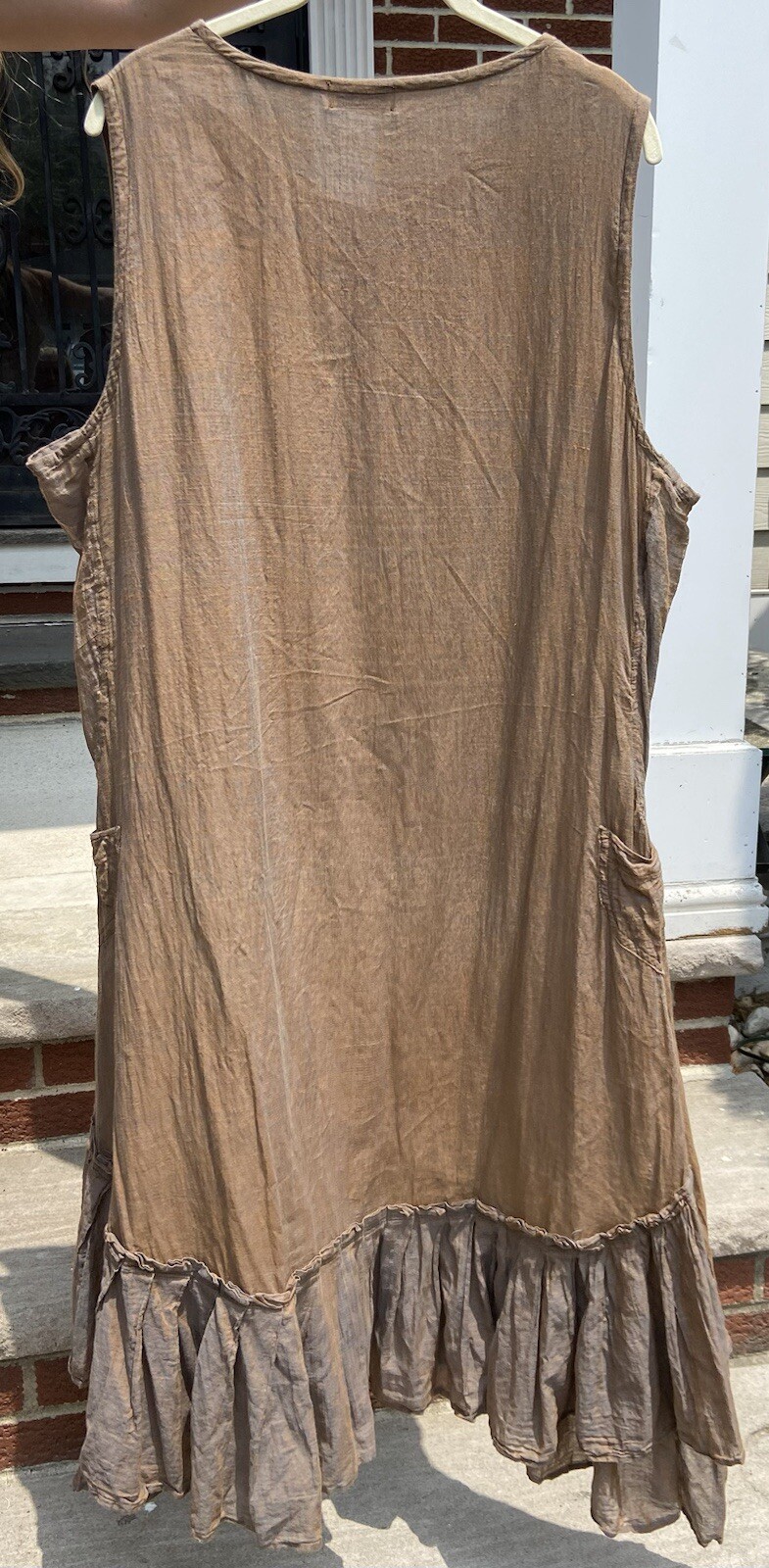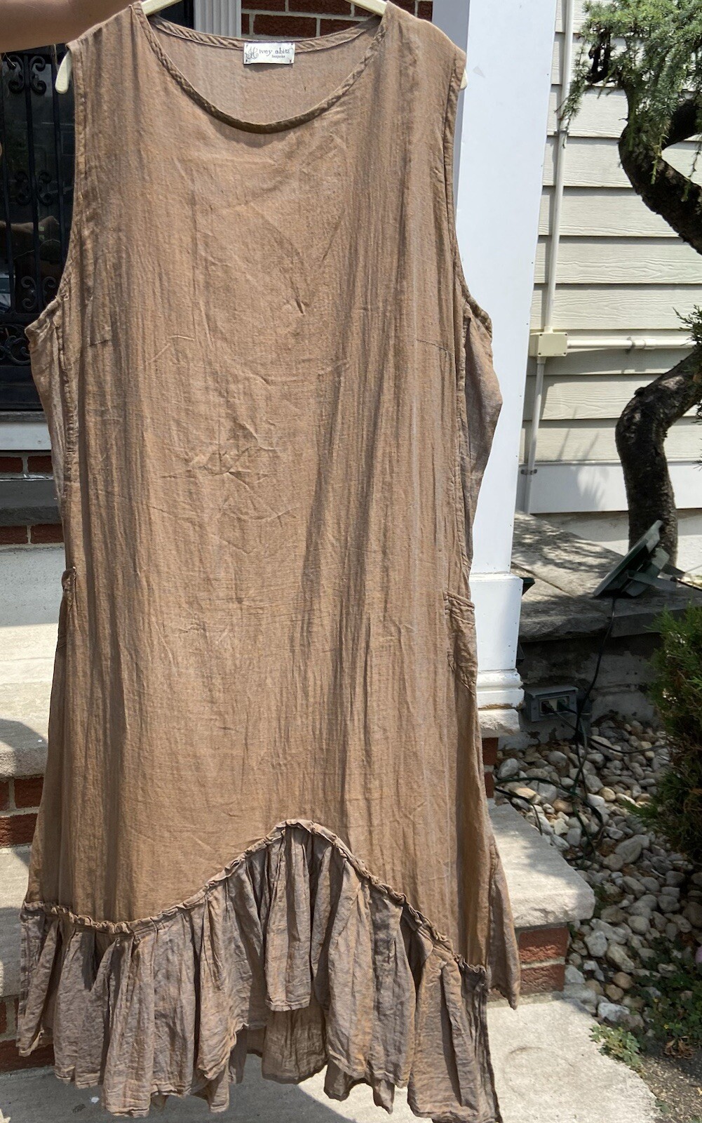 IVEY ABITZ FRITZ FROCK - SLEEVELESS DRESS SUN & SKY COTTON VOILE Women's MEDIUM Frock Description: Fitz Frock flows with energy and a hint of feistiness. Asymmetrical bottom hem creates a dramatic sweep. Intricate pleating follows the hem's curve for visual rhythm. Darting and gentle tailoring at the waist for a relaxed, feminine silhouette. Good coverage at arm holes and shoulders. Small pockets on side seams for convenience. Fabric Description: Introducing our beloved washed cotton voile, a perennial favorite that returns every summer in a new captivating hue. Our loyal clients have embraced this weave year after year, making it a staple in their wardrobes. This season, we're thrilled to unveil a fresh hue combination that's never been seen before. You're in for a treat with this new addition! Content Content: 100% cotton. Versatile for all seasons. Care Care: Hand wash or delicate cycle in cold water with a gentle, plant-based detergent. Use a natural fabric softener to preserve its softness. Tumble dry on extra-low heat with artisan wool dryer balls for a relaxed finish. Shipped out via PRIORITY MAIL - Fully Insured. I am selling a bunch of rare & fabulous IVEY ABITZ gems here on Ebay for a friend. Magnolia Pearl too!! Check them out before they disappear.