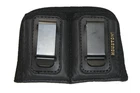 Houston Holsters Fits most double stack subcompact 9mm & 40 caliber magazines such as SIG SAUER P365, Taurus G2C & G3C, Springfield Hellcat, Glock 26/27, Springfield XD/XD MOD.2 Subcompacts, Smith & Wesson M&P9C, SIG P320/P250 Subcompact. Fits short double stack mags. If it doesn't fit your magazine, we will offer a 100% money back guarantee or exchange for the right fit/size. Your choice. This multi use double magazine pouch is designed to be worn inside the waistband for ultimate concealment unlike most magazine pouches that are outside the waistband/belt mag pouches. Carefully designed and manufactured for everyday concealed carry close to your body. It’s like an inside the waistband holster for your extra magazines. The exterior is made out of soft textured, treated “eco” leather making it very comfortable to wear close to your body. The interiors are suede lined for greater protection of magazine surfaces and creates a really smooth draw. It’s very safe & easy to use. This magazine pouches clip on and off your belt or pants easily with strong yet flexible metal clips. It’s also water/sweat proof and resistant to daily use. Can also be used for small flashlights, folding knifes, & pepper spray. Houston Holsters “eco” leather double magazine pouch is high quality construction & durable. This set up leads to a highly resistant holster/mag pouch for a very affordable price. Suede lined interior for greater protection of magazine surfaces & smooth draw Soft treated "Eco" leather makes this one of the most comfortable magazine pouches to wear daily Easily clips on and off your belt with flexible metal clip (tuck & go) Water and Sweat Proof Affordable Price Quick and Smooth draw Very slim profile for better concealment Ambidextrous (can be used on left or right side, appendix, small of back) Personal Testimonial "I work as a firearms instructor and started wearing Houston Holsters a few years ago when I was given the Glock 43 soft "eco" leather model holster as a sample to try out. It was the most comfortable holster I ever wore and I fell in love with it. Now I always use the soft "eco" leather model holster for concealed carry for all my guns. But I used to never carry an extra magazine with me because it was a hassle. In your pocket it shifted around and never stayed in the same position. Then it would gather lint and dust. And lastly it was slow to get out. Some of my larger mags were just plain uncomfortable to carry in my pocket. The only option out there was outside the waistband mag pouches that weren't very concealable and had to be looped through your belt. Now Houston Holsters makes the magazine pouch version of the soft "eco" leather holster and it has all the same great features. You can take it off and on easily because of the metal clips (tuck & go) and don't have to deal with the hassle of looping it through your belt just to go to the corner store. Its slim in profile & sits close to the body so it conceals under your shirt really well (no bulge at all!). Drawing the magazine from the pouch is super smooth like silk because of the suede lined interior... and very fast. And its really comfortable. Wearing it daily now and it holds up really well. Its tough & durable. Lastly, its really affordable. The Houston "Eco" leather magazine pouch is like having a concealed carry inside the waistband (IWB) holster for your magazine! Once you start wearing it, you will never want to leave the house without those extra magazines. Really cool product - a concealable inside the waistband holster for your magazines." DETAILS Black, Ambidextrous , Inside the Waistband (IWB), Please feel free to contact me to find out if this magazine pouch fits a specific gun model magazine you own, or if you are interested in other mag pouch sizes for other compact, mid size, full size magazines. I have mag pouches available for most gun makes and models in both single and double magazine pouches (small .380s like LCP, or full size guns like 1911s, etc.) 100% Money Back Guarantee. Ships Same Day or Next Day (except Weekends) "Eco" leather is a seating upholstery made of 20% recycled leather. The recycled leather is featured as the backing to enhance stability, durability and comfort. (Office Star - Just simply furniture, jsfonline.com/eco-leather/) This magazine pouch can be worn in the following positions.... left side hip, right side hip, appendix, small of back. Can be worn in any position you prefer on your waistline. This magazine pouch is NOT meant to carry outside the waistband like a police duty magazine pouches. Meant to be worn tucked into your pants with metal clips clipped on the outside of your pants.