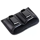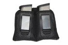 IWB Double Magazine Holster for Single Stack 9mm Mag fits Glock 43, M&P Shield + Made of ECO Leather ."Eco" leather is a seating upholstery made of 20% recycled leather. The recycled leather is featured as the backing to enhance stability, durability and comfort. (Office Star - Just simply furniture, jsfonline.com/eco-leather/) Size Description Chart Below: Compatible with Below FITS MOST GUN MAGAZINES: Can be used for 7rd, 10rd, 15rd, Subcompact, Compact, Full Size, Smith & Wesson M&P Shield 9mm, Bodyguard 380, .45, Glock 19, Glock 17, Glock 22, Glock 26, Glock 27, Glock 42, Glock 43, P320, P226, P229, P238, P938, Beretta Nano, Springfield XDs & XDM, Sig Sauer, Kahr, Kimber Solo, Kel Tec, Walther, Bersa Thunder 380 Plus, Ruger LCR, LCP 380, & LCRx 38, Taurus TCP, PT738 & PT111, SCCY CPX-II and Similar Sized Guns. - Fits Most Small 380 Caliber Single Stack Magazines - Glock 42, Ruger LCP, Smith & Wesson Bodyguard, Walther PP, Beretta Pico, Beretta Tomcat, Beretta Bobcat, North American Arms Guardian, Kahr CW380, Taurus PT738 TCP 380, Kel-Tec P3AT, Diamondback DB380, Jimenez J.A. 380 - Fits Most Single Stack 45 Caliber Full Size Magazines - Colt 1911 & Variants If it doesn't fit your magazine, we will offer a 100% money back Guarantee & Free Returns This multi use magazine pouch is designed to be worn inside the waistband for ultimate concealment unlike most magazine pouches that are outside the waistband/belt mag pouches. Carefully designed and manufactured for everyday concealed carry close to your body. It’s like an inside the waistband holster for your extra magazines. The exterior is made out of soft textured, treated “eco” leather making it very comfortable to wear close to your body. The interiors are soft lined for greater protection of magazine surfaces and creates a really smooth draw. It’s very safe & easy to use. This magazine pouches clip on and off your belt or pants easily with strong yet flexible metal clip. It’s also water/sweat proof and resistant to daily use. Can also be used for small flashlights, folding knifes, & pepper spray. Houston Holsters “eco” leather magazine pouch is high quality construction & durable. This set up leads to a highly resistant holster/mag pouch for a very affordable price. Soft lined interior for greater protection of magazine surfaces & smooth draw Soft, treated "Eco" leather makes this one of the most comfortable magazine pouches to wear daily Easily clips on and off your belt with flexible metal clip (tuck & go) Water and Sweat Proof Affordable Price Quick and Smooth draw Very slim profile for better concealment Ambidextrous (can be used on left or right side, appendix, small of back) Ease Of USE You can take them off and on easily because of the metal clips (tuck & go) and don't have to deal with the hassle of looping it through your belt just to go to the corner store just like the holster. Its slim in profile & sits close to the body so it conceals under your shirt really well (no bulge at all!). Drawing the magazine from the pouches is super smooth like silk because of the soft lined interior... and very fast. And its really comfortable. Wearing it daily now and it holds up really well. Its tough & durable. Lastly, its really affordable. Something of this quality is usually much more expensive. The Texas "Eco" leather double magazine pouch is like having a concealed carry inside the waistband (IWB) holster for your magazines! Once you start wearing it, you will never want to leave the house without those extra magazines. Really cool product - a concealable inside the waistband holster for your magazines." DETAILS Black, Ambidextrous , Inside the Waistband (IWB), Concealment Double Magazine Pouch Please feel free to contact us to find out which size from the size options above fit your magazine if not sure after reading the size description chart & Photos 100% Money Back Guarantee. Ships Same Day or Next Day (except Weekends) This double magazine pouch can be worn in the following positions.... left side hip, right side hip, appendix, small of back. Can be worn in any position you prefer on your waistline. This magazine pouch is NOT meant to carry outside the waistband like a police duty magazine pouches. Meant to be worn tucked into your pants with metal clip clipped on the outside of your pants. Package 1X Magazine Holster Only No gun or any other parts or accessories included in the Package