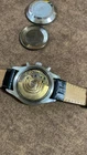 Introducing the IWC The Pilot's Chronograph Men's Watch, Automatic, Day/Date - Ref. 3706 Uesd. This remarkable timepiece boasts a mechanical (automatic) movement, making it a reliable choice for any occasion. Its water resistance capability of up to 3 m (0.3 ATM) makes it suitable for use while diving or other water activities. The watch was manufactured between 1980-1989 in Switzerland by IWC, a renowned brand in the watch industry. It features an alarm and chronograph, making it a versatile tool for aviation and other industries. The stainless steel case and black leather band give it a sleek and sophisticated look, perfect for any style-conscious man.
