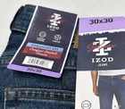 IZOD Men's Straight Fit Comfort Stretch Denim Jeans Stained (See the Pictures Please) Size: 30X30 Color: Dark Blue Content: 68% Cotton / 26% Polyester / 4% Other Fiber / 2 % Spandex