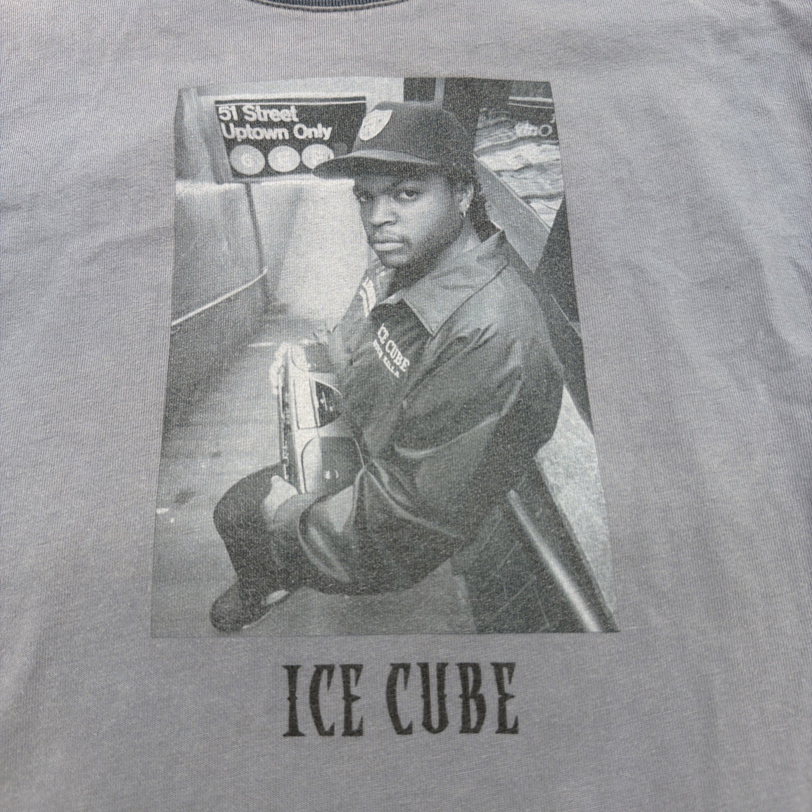 The Ice Cube Collection T-shirt for kids boys in size 7 is a stylish and comfortable addition to any young boy's wardrobe. Made from 100% cotton in a light fabric wash, this gray short-sleeve shirt features a graphic print of a boy character with a relaxed fit. Perfect for casual occasions, parties, or travel, this pullover shirt with a crew neck and logo accents is suitable for all seasons, including summer, fall, and spring. Ideal for activities like beach trips, dance, and basketball, this cartoon and hip hop themed t-shirt from the brand Icecube is sure to be a hit with any young trendsetter. Check pictures for flaws and measurements