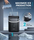 Speedy Ice, Ample Supply: Get your ice ready in just 13 minutes! With a daily production of 33 lbs, this ice maker ensures you’ll never run out, whether it’s for daily drinks or entertaining guests Perfect Ice for Every Sip: Say goodbye to quick-melting bullet ice, keeping your drink fresh. Customize the thickness to match your beverage, from smoothies to iced coffee More Water, More Ice: With an additional 1.5L external water tank, you can enjoy longer ice-making sessions without frequent refills. Perfect for busy days or entertaining guests Effortless Maintenance: Keep your ice maker sparkling clean with the press of a button. Simply activate the 20-minute cycle and let the machine handle the mess, so you can focus on enjoying your ice Stylish & Space-Saving: Elevate your kitchen with a sleek, compact ice maker that blends seamlessly with any décor. Its modern design takes up minimal space while adding a touch of elegance