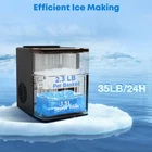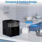 6MINS FAST ICE MAKER: Equipped with upgraded compressor, The ice maker can make 9 bullet-shaped ice cubes in 6mins, quickly obtain crispy & delicious ice cube. Max ice production up to 35 pounds/day. Countertop ice maker with 2.3 pounds large ice storage capacity and 1.5L water tank capacity SELF-CLEANING: Just long press the ON/OFF button for 5 seconds to start the self-cleaning function, eliminated the hassle of manual cleaning, and let's you enjoy clean, healthy ice. It is recommended to clean the self cleaning ice makers once a month TWO SIZES OF ICE CUBES: Simply select S/L on the control panel, can make 2 different sizes of ice cubes to meet your different needs. The newly designed countertop ice maker produces the bullet-shaped smooth ice cubes, is an ideal choice for cold drinks and food EASY TO CONTROL: The ice machine makers is easy to operate, just add water, press ON/OFF button, select S/L to start. Equipped with intelligent infrared sensor technology, the indicator light comes on and automatically stops working when ice full or lack water. Low noise, provides a quiet environment for ice-making PORTABLE ICE MAKER: The small portable ice maker is 8.7*11.34*11.42in (W*D*H), you can put ice maker anywhere, perfect for home, office, kitchen, camping, party, bar and more. Including ice basket, ice scoop. NOTE: After receiving it, please leave it for 24 hours before starting to use it