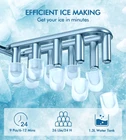 Efficient Ice Making: This countertop ice maker can produce up to 9 bullet-shaped ice cubes in just 6 minutes. With a 1.3L water tank, it can make up to 26 pounds of ice in 24 hours. You can choose between two ice cube sizes, small cubes for keeping seafood and beer cool and large cubes for quickly chilling your drinks Easy-to-Use Smart Features: Our ice maker has an "Add Water" indicator light that reminds you to add water when the water tank is running low. It also has an "Ice Full" indicator light that signals when the ice bin is full and needs to be emptied. Simply turn on the power, select the ice cube size, and let the machine do the work Convenient Self-Cleaning: This ice machine has a self-cleaning mode that you can activate by holding down the ON/OFF button for 5 seconds. The cleaning process takes 30 minutes and is effortless. It also has a hidden drain plug for quick and easy drainage, ensuring that every drink you make is healthy and hygienic Low-Noise Cooling System: This countertop ice maker is equipped with a new cooling system and a quiet fan that freezes water quickly and efficiently. It operates at a low noise level of less than 45 decibels, creating a comfortable and quiet environment for making ice, similar to a working refrigerator Portable Compact Design: This small ice maker weighs only 13.23 pounds and has a compact size of 11.5 x 8.7 x 11.4 inches, making it easy to transport with its sturdy handle. It can be placed in the kitchen, office, RV, or any other location without taking up too much space. It also comes with an ice scoop and a removable ice bin for easy transfer and storage of fresh ice cubes in your freezer
