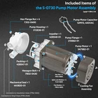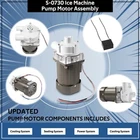Fitment: The S-0730 ice maker pump motor is a replacement for Hoshizaki models S-0730, 213780A01, 215692A01, and 215692A03. It is compatible with Hoshizaki ice machine models KM-1200SAE, KM-1200SRE, KM-1300SAF, KM-1300SAF3, KM-1300SAH, KM-1300SAH3, KM-1300SRF, KM-1300SRF3, and other models as listed Features: 1) This top-of-the-line pump is specifically designed for use with Hoshizaki KM series ice machines, ensuring optimal performance and reliability. The water pump is a vital part of your ice maker and ensures that it can produce and harvest ice effectively. Be sure to replace a broken one promptly 2) Motor rated 120 Volts, 60 Watts, 3230 RPM. Capacitor Included 8uf x 250vac. 1 inch and 3/4 inch I.D. Dishcharge Ports 3) This pump motor assembly is specifically built for ice machines with large-scale ice production, ensuring it can effortlessly handle high daily outputs and continuous operation. It guarantees the machine can meet the demands of households, as well as high-traffic environments like hotels, restaurants, and grocery stores 4) The pump motor assembly’s modular plug-and-play design simplifies installation and routine maintenance. This feature reduces equipment downtime, making disassembly and upkeep quicker and more convenient 5) Equipped with an enhanced cooling mechanism, the improved heat dissipation design effectively prevents the pump motor assembly from overheating, lowering the risk of failure. This design also reduces noise and heat during operation, prolonging the equipment's lifespan and boosting efficiency Package included: S-0730 ice maker pump motor