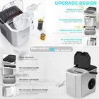 【WHY YOU NEED AN ICE MAKER】As global warming continues to heat the planet, people increasingly turn to ice makers countertop to stay cool. Ice machine is the perfect way to cool your drinks on a hot day. Whether you're enjoying a glass of water, iced tea, or soda, ice will help to keep it refreshing and thirst-quenching. 【BUILT TO LAST】This durable ice maker machine is built with premium materials and construction. The ice-making is more powerful, especially with the high-efficiency compressor, so you can be sure it will stand the test of time. The countertop ice maker comes with a comprehensive warranty covering all defects in materials and quality for one year. 【FAST ICE MAKING】Never wait long for a cold drink again. It only takes 6 minutes to make 9 bullet-shaped ice cubes. Fill 1.3L of water into the tank; maximum ice capacity can reach 26.5 pounds in 24 hours. With a large capacity, our home essentials ice makers can keep your family and friends well-stocked with ice all day long. 【SELF-CLEANING FUNCTION】Self-cleaning ice machine countertop is the perfect way to ensure your ice is always fresh and clean. Long press the ON/OFF button for 5 seconds, and the ice maker will automatically clean itself. 【One-year Warranty】offers a one-year warranty on all of its products. If your product malfunctions or breaks within one year of purchase, you can get a free replacement. - we've got your back!