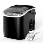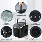 Ice Maker for Countertop, 9 Ice Cubes Ready in 6 Mins, 26lbs Ice/24Hrs, with Self-Cleaning Feature, Ice Spoon and Basket, for Home, Kitchen, Camping, Party, Black Compact and Portable:The lightweight and portable design of the mini–ice maker makes it easy to store or carry, just 8.8(W)*11.6(D)*11.4(H) inches and weighs less than 14lbs, more light than other brand, widely used in home, kitchen, office, bar etc. Quickly Ice Making: Just pour water into the ice maker, run it for 6-8 mins, then you can enjoy 9 ice cubes. It even can produce up to 26 pounds of ice per day, will be a perfect substitute for the old one in your home. Self-cleaning function: With self-cleaning function, just press on/off button for 5s to start self-cleaning mode, which allows you not to worry how and take time to clean it. Add a little lemon or soda to help better cleaning. Quiet Operation: Operates at a low 35 decibel level, so you can have a quiet environment. This ensures that you are not disturbed by noise. Easy to use: Just fill the ice maker with water (less than 1.2L), press the ON button. With infrared sensor, when the ice basket is full (over 1.3lbs), or the water is insufficient, the indicator light will turn on, it will stop the ice making.