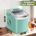 Ice Makers Countertop,Countertop Ice Maker with Self-Cleaning,26Lbs/24H,9 Cubes in 6 Mins,2 Sizes of Bullet Ice,Portable Ice Machine Maker Countertop with Ice Scoop/Basket for Home,Green Fast Ice in 6 Minutes:Produce 9 ice cubes in just 6 minutes with our countertop ice maker. It delivers up to 26 lbs of ice in 24 hours, ensuring you’ll have plenty for family use or parties. Reliable and efficient, it’s the perfect solution for your ice needs. Bullet-Shaped Ice Cubes:Our portable ice maker produces smooth, crystal-clear bullet-shaped ice cubes that stay separate and retain their shape. These ice cubes cool drinks quickly, making every sip refreshing and enjoyable. Simple One-Touch Operation:Making ice is effortless with our one-button design. Indicator lights alert you when the basket is full or water is low. Just add water, press a button, and enjoy fresh ice in minutes—no complicated steps needed. Low Noise, High Efficiency:Equipped with a modern compressor, this ice maker combines fast performance with low noise levels, so it won’t disturb your work or entertainment. The air cooling system enhances efficiency and prolongs the machine’s lifespan. Compact and Portable:With dimensions of 11.42” x 8.7” x 11.3”, this compact ice maker is easy to move and fits perfectly in kitchens, living rooms, bedrooms, offices, or parties. Its portability makes it a versatile addition to any space.