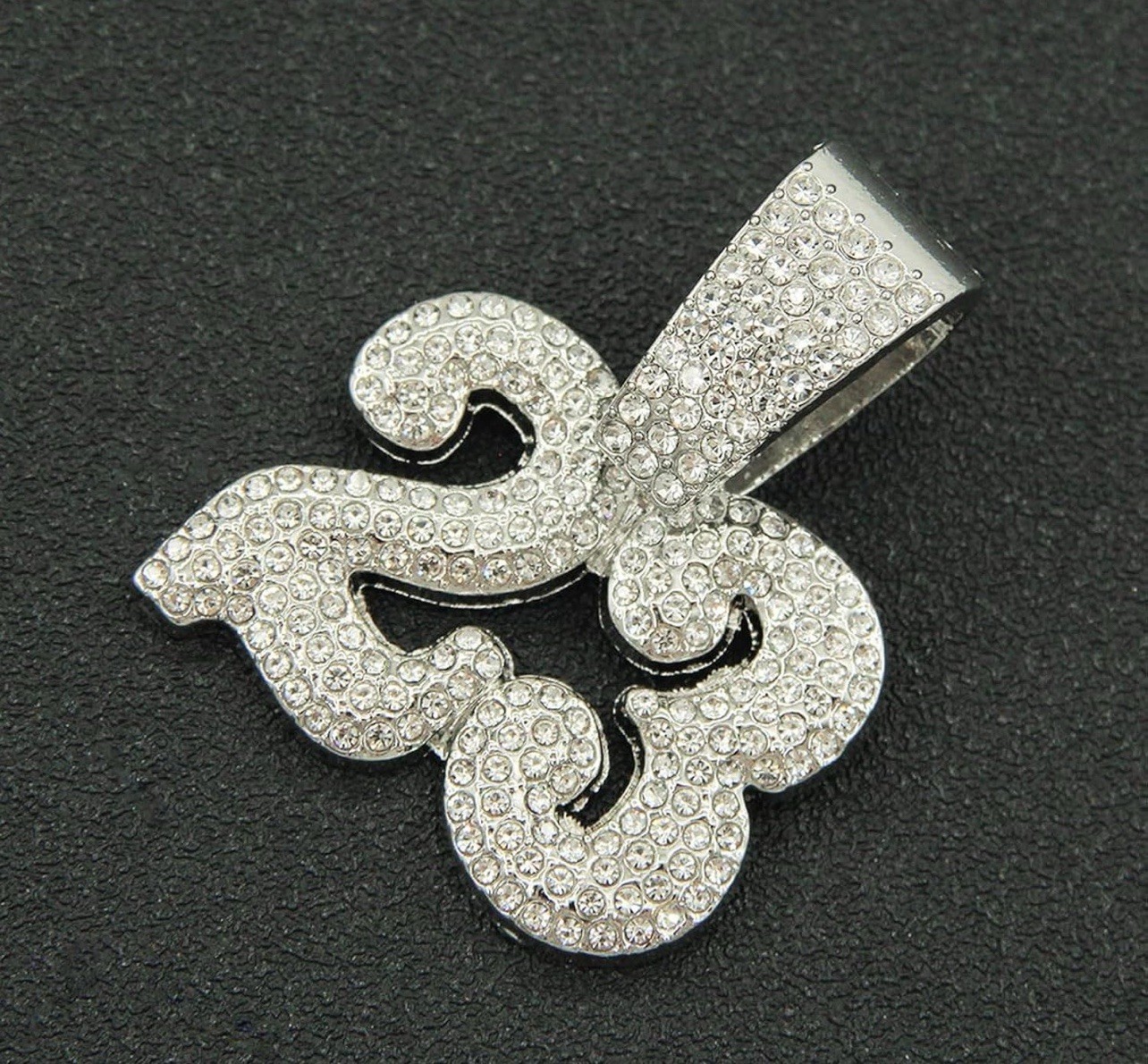 Elevate your style with this stunning Iced Out “23” Pendant, a stunning piece that exemplifies modern sophistication. L. This gorgeous NUMBER 23 pendant is meticulously crafted with sparkling white rhinestones, set in a durable alloy base that provides a lustrous silver finish.. Its unique shape and charming appeal make it a versatile accessory for any occasion, easily paired with a range of necklaces to complete your look. The pendant hangs gracefully on a 20-inch iced out Cuban link chain, offering a comfortable fit and a timeless aesthetic.. With its unbranded design, this accessory is perfect for those who appreciate understated elegance and want to make a statement without the distraction of visible logos.. 23 is a legendary numbers on many levels.. Whether it's for personal wear or a thoughtful gift, this 23 pendant & iced out chain is a tasteful choice for any classy collector looking to add a touch of glamour to their ensemble..