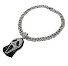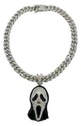 Elevate your accessory game with the Iced Out “SCREAM MASK” Pendant & Chain COMBO, a striking addition sure to grab the attention on the room when you walk in warning this gorgeous well known set.. Expertly crafted from high-shine silver-tone alloy, this pendant showcases a vivid design inspired by iconic horror imagery.. It’s suspended on an 18-inch Cuban link chain, providing a perfect drop length for a variety of looks. The pendant features a central cubic zirconia stone that captures the light, complemented by additional zirconia accents for a luxurious sparkle.. Versatile enough for any occasion, this piece blends seamlessly with both casual and formal wear.. Proudly sourced in the United States, this pendant is a testament to contemporary style and whimsical flair.