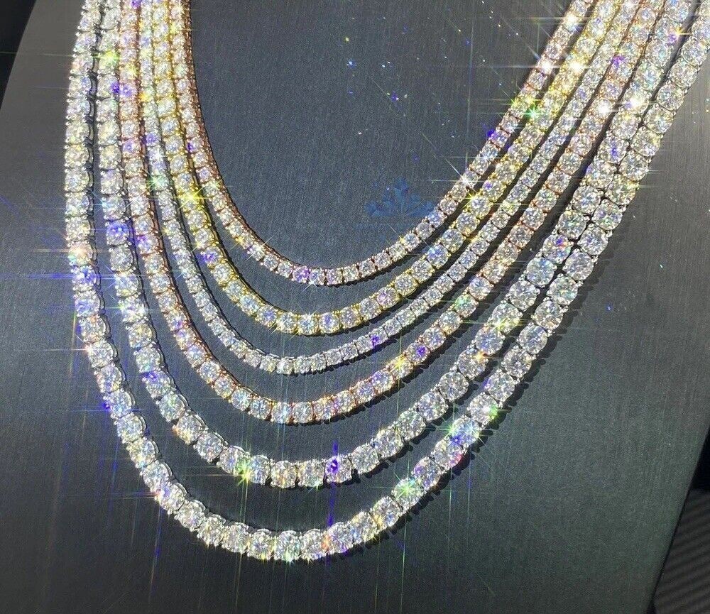 $ 31.153mm Moissanite S925 Sterling Silver Tennis Chain Necklace 22 Inch VVS D Color