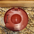 The storage container was in great shape and was not stained. It had no cracks or damage. It arrived quickly and was packaged well. It was exactly as described and a great value.