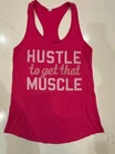 Ideal Women’s Athletic Pink Racerback Tank Top Size M “Hustle to get that muscle”