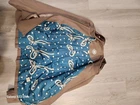 The Idra Anthropologie Women Beige Wool Ruffle Confection Full Zipper Jacket in size 4 is a stylish and versatile outerwear piece perfect for the fall and winter seasons. Made of wool with a cozy cotton lining, this jacket features a ruffle collar and full zipper closure for added flair. The mid-length design and long sleeves make it suitable for both casual and party occasions, while the lightweight polyester insulation ensures comfort. The neutral brown color and solid pattern make it a classic and timeless addition to any wardrobe, with a touch of bohemian and retro flair.