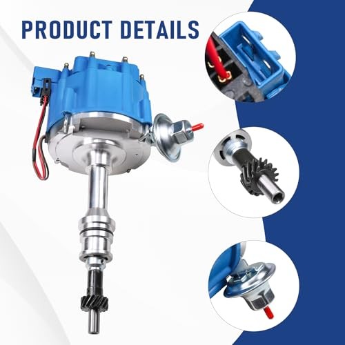 Ignition Distributor with 65k Coil One Wire Replacement for Ford 351W Windsor HEI Small Block Blue Distributor Replace 1035113 JM6510BL Ignition Distributor with 65k Coil One Wire Replacement for Ford 351W Windsor HEI Small Block Blue Distributor Replace 1035113 JM6510BL Simple 1 wire hook-up plus connection for electronic tachs True spark alignment for instant throttle response Vacuum advance with blue cap design 65,000 volt coil ensures accurate and reliable timing up to 7,500 RPM Built-in ignition module for enhanced performance Compatible with Ford small blocks 351W Windsor engines