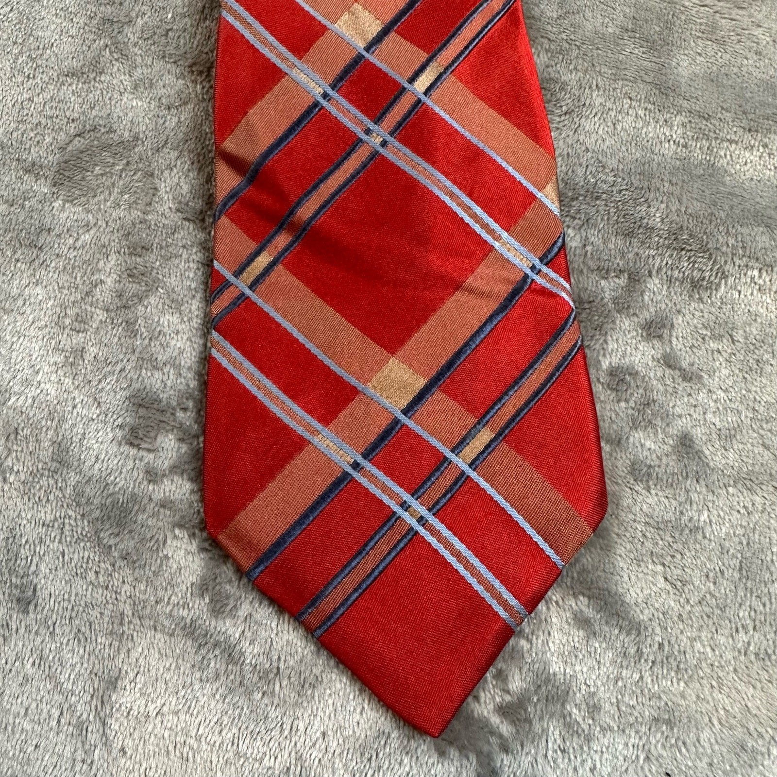 $ 7.92HERMES Navy Red Geometric Silk Tie for Men Made in France