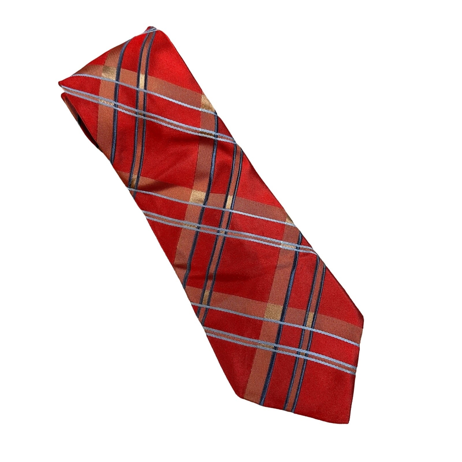 Ike Behar New York Silk Tie Red Tartan Plaid Blue Great condition, see photos. All silk. Total length ~60"