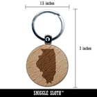 Illinois State Silhouette Engraved Wood Round Keychain Tag Charm