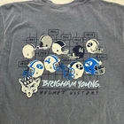 ImageOne (Comfort Colors Tag) Sportswear Brigham Young University Cougars, NCAA Men's Size Medium T-Shirt, Short Sleeve Heather blue color tee with multi-color printed graphics "BRIGHAM YOUNG" team Logo and "HELMET HISTORY" on left chest Team Football helmets through the years printed on back NCAA officially licensed gear See photos for details, appearance and measurements Brand New With Tags Buy It Now and Save $$ Inv#0599