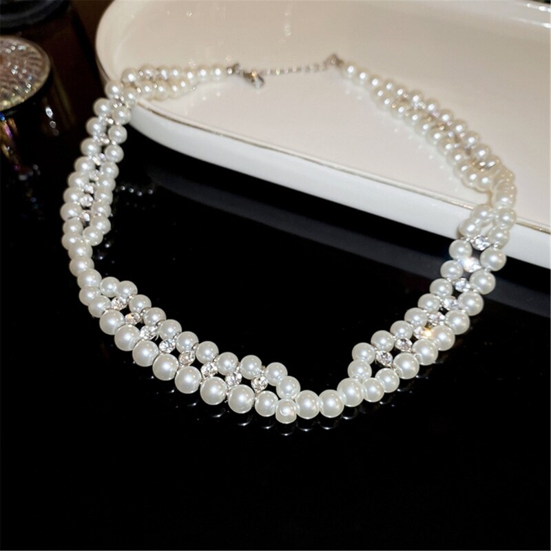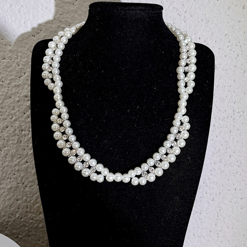 $ 1.45Elegant Double Layer Pearl Bowknot Choker Necklace